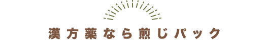 煎じパックは、多くの漢方薬の本来の姿である「煎じ薬」をパック詰めにしたものです。 これまで煎じ薬を飲む場合、ご家庭で毎日煎じる必要があり、その手間が負担になっていました。 煎じパックをご利用していただければ、煎じる手間がなくなり飲みたいときに手軽に飲めるので、 今までの生活リズムを崩すことなく漢方薬(煎じ薬)を続けていただけます。 手軽に本格漢方を。「煎じパック」は漢方薬の新定番です。
